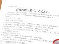 1年生は、キャリア教育の一環として、2月に「職業講座」を行います。PTAにご協力をいただき、各分野でお仕事をしている方々からお話を伺います。今日は全学級で、「働くこととは?」というテーマで学習に取り組んでいました。