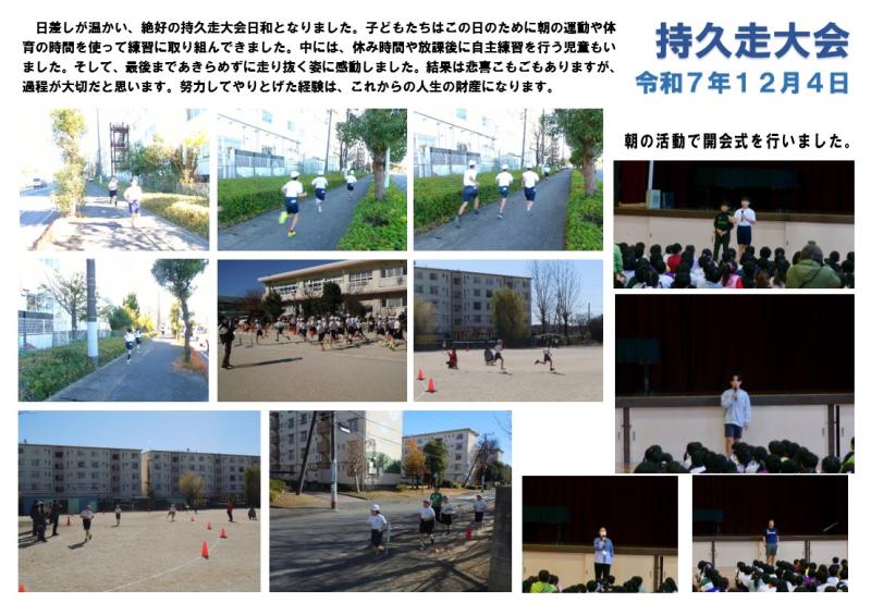 校庭では、子どもたちが持久走大会に向けた練習を頑張っています。
