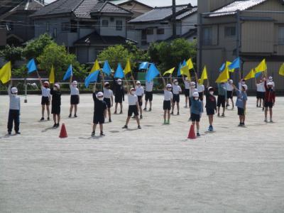 2学期のぐんぐんタイムは、短縄の時間跳びに挑戦していきます! 低学年の目標は1分30秒間、中・高学年の目標は3分間です。練習タイムでは、途中で縄に引っかかってしまった子も、すぐに跳びなおす様子が見られました。熱中症の予防をしながら、体力の向上を目指していきます!