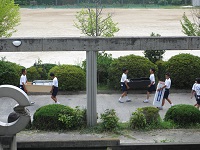 天気もよく、一緒に外遊び。ちょっと緊張気味の生徒たち。