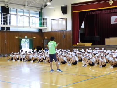 体育館で児童集会「魔法の言葉集会」をしました。
