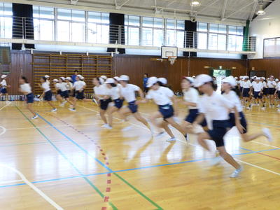 朝、学校出発の時には、1組2組のみんなが応援の見送りをしてくれました。