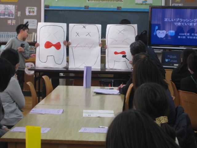 今日の児童集会は保健委員会児童による発表「三色朝食で元気に過ごそう」を行いました。