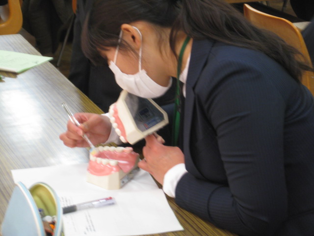 体育主任・養護教諭による本校の実態報告、学校栄養士の阿部美希先生による講話に続き、グループ学習を行いました。