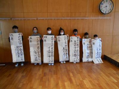 6年生は、たくさんの言葉と拍手で送り出してもらい、照れながらも嬉しそうな表情でした。いよいよ卒業するんだという気持ちが高まったようです。胸を張り前を向いて、新たな一歩を踏み出してほしいです。在校生一同、いつまでも応援しています。
