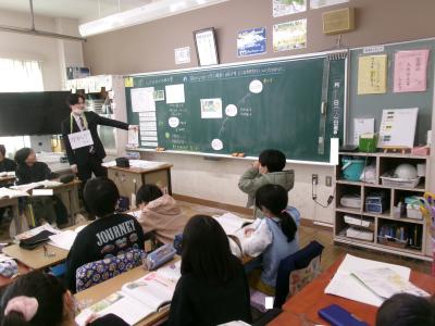 今日の1時間目に3年生のクラスで道徳の研究授業がありました。「心にひびくかねの音」という