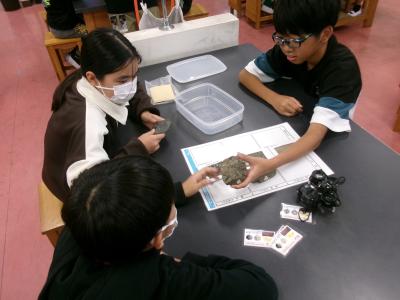 た。大地のつくりと変化という単元で、地層の話を聞いたり、実際にれき岩、砂岩、泥岩を触った