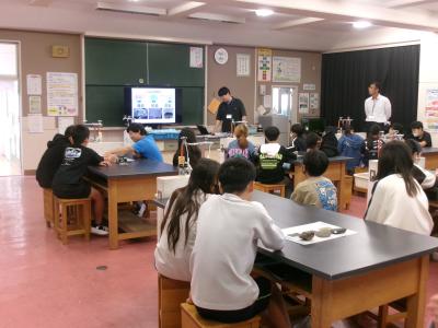 6年生は理科の出前授業がありました。講師は、埼玉県立自然の博物館の学芸員(地質)の方でし