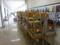 本日は3時間授業で給食なしで放課となりました。3時間目は全校で大掃除を行いました。自分の机以外にも1年間過ごしたクラスを清掃しました。帰りの会で机等は廊下に出し、放課後は環境委員の生徒たちが教室の床を丁寧にワックスがけをしました。