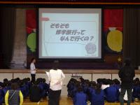 5時間目に体育館にて「修学旅行スタート集会」を2学年が行いました。この集会は4日に行われた校外学習の反省をもとに、3年時で行う修学旅行についての第1回目の集会となります。担当の先生から「なぜ修学旅行を行うのか」「具体的な行程」等について丁寧に説明をおこないました。スライドを活用した説明であり、生徒は目を輝かせて話を聞いていました。