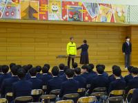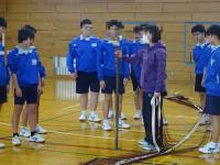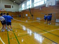 二年生の体育は、女子は「卓球」、男子は「バドミントン」を学習しています。男子は最初に、競技準備についての説明がありました。体育館全面に各班ごとに移動してネットのポールを立てた後、ネットの貼り方を先生が説明し始めるとすぐに静かになり、話を聞く雰囲気が自然と生まれました。素敵な瞬間でした。