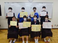 また、昨日は東中生の頑張りを紹介する表彰朝会がありました。書道や美術の展覧会等の表彰でした。