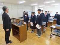 学級委員任命式がありました。 投稿日時 : 15:01 東中主担 今日も過ごしやすい一日でした。さわやかな朝なので、今日も登校風景を紹介します。自転車置き場の自転車やヘルメットがきちんと整頓されていて、とてもきれいですね。 一時間目開始前に、学級委員任命式がありました。各クラスのリーダーを中心として、全員でよいクラスをつくっていきましょう。