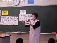 11月28日(金)に1年生が歯科衛生士さんからブラッシング指導を受けました。歯の磨きにくいところの磨き方を教えてもらいました。しっかりと磨けているか確認するために染め出しを行って、磨けていないところを見えるようにして確認しました。自分が思っている以上に磨き残しがあって、子供たちは驚いていました。今回の経験を生かして、これからはより歯を大切にして過ごしていくことができるとよいですね。