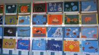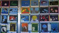 5・6年生は版画に取り組み、完成した作品を想像しながら、丁寧に線をほって上手に作品を作り上げていました。カメラに収まらない部分もあったので一部になってしまいましたが、みんな上手に作品を仕上げることができました。栄小学校の友達からたくさんのメッセージを受け取ることができるとよいですね。