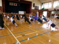 5年生の授業では、親子で体を動かしました。