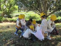 いろいろな色や形のドングリや落ち葉を拾うことができました。