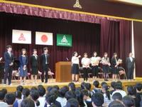 午後は、年度当初人事で転退職された先生方をお招きして、離任式を開催しました。9名の先生方に来ていただきました。手紙と花束贈呈の後、一人一人お話がありました。北谷小を思う気持ちにあふれたお話でした。新天地でのご活躍をご祈念します。