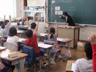 朝のパネルシアターはあおたんクラスでした。動物を英語で表したり紙芝居を見たりしました。2年3組の図工はみんなで作品の観賞会です。5年2組の道徳は「ダメなものはダメ」について考えました。6年1組の体育では変わったサーキットトレーニングをしていました。1年1組はウサギと戯れていました。2年2組の算数ではウナギパイを使ってかけ算の仕組みを学んでいました。