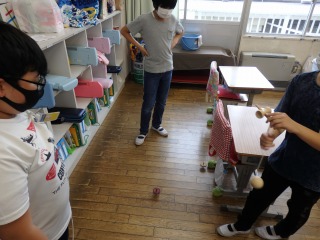 2年1組の算数は、実験をしながら水のかさを比べる方法について、みんなで考えることができました。