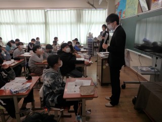 5時間目に南中の5名の先生方が来校され、6年生に中学校の様子を知ってもらう授業を展開しました。一日の学校生活の様子を動画で見た後、中学校の仕組みを話していただきました。たくさんの質問にも答えてくれました。進学への不安もありましたが、かなり解消されました。