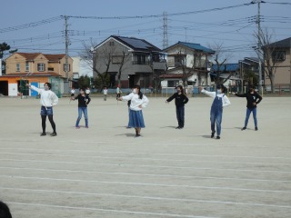 昼休みに校庭でバトンクラブの発表会がありました。3曲披露してくれました。応援のプラカードを持ったり、高いところに登ったりと、多くのギャラリーに見守られました。