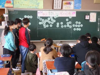 6年1組と2組で校長先生が算数のまとめの授業をしました。算数で使われる言葉をゲーム形式で確認しました。