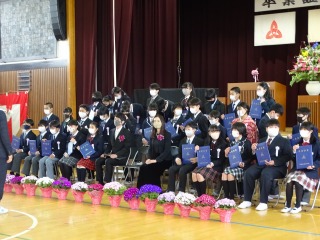 朝、体育館の横の田畑にキジが現れ、祝福の声を響かせていました。第46回卒業証書授与式は95名全員の参加のもと行われました。卒業生の立派な態度にとても感心させられました。中学生になってもしっかりと進んで行けることでしょう。卒業生の人生に幸あれ。卒業おめでとうございます。(校長式辞はこちらから→卒業式式辞.pdf)
