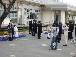 午前中、1年生は外と教室でお別れ会をクラスごとに行っていました。