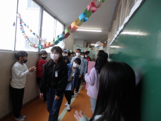4時間目には卒業生が各学年の廊下を巡り、下級生と最後の別れをしました。メッセージカードなども書かれ、卒業生に伝えられました。