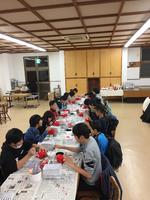 中学生に手伝ってもらい、大学いもとさつまいもの味噌汁を作りました。さつまいもは、