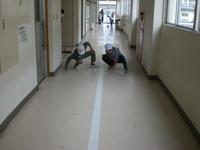 管理棟1階の廊下は6年生の2クラスが掃除に来ています。さすが6年生です、全校のお手