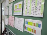 黒板の字をていねいに写したり、友達と会話しながら答えを探したり、