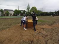 21日土曜日小雨降る中、今年度最初の活動を行っていただきました。28日土曜日に開催されるスポーツ大会に向けて校庭の整備(土入れ)を行っていただきました。