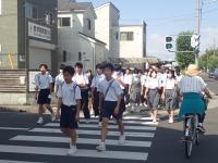〈朝の登校、地域の方と譲り合い、斜め横断する生徒もなく安全に登校しています〉