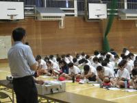 2時間目に3年生を体育館に集め、税理士さんに講師を務めていただき「租税教室」をおこないました。これは毎年この時期に行っているもので、いずれ本格的な「納税者」になる生徒に税金の仕組み等を理解する大事な教室です。生徒はクイズなどにも積極的に参加し、1億円の重みも体験するなど、税金の大切さについて理解を深めていました。