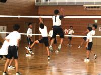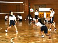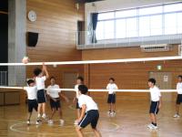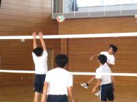 3年生の体育の授業の様子です。秋らしい爽やかな気候の下で、生徒たちは気持ちよさそうに体をうごかしていました。体育館では、バレーボール、校庭ではソフトボールのゲームに取り組んでいました。ボールをつないでスパイクを打つ様子や、長打を打ってホームベースまで走り抜ける様子など、盛り上がっていました。