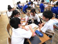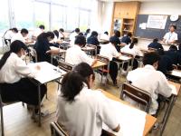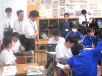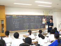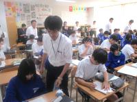 市内の小・中学校の先生方が集まり、授業を参観しています。この後、指導者の先生を交えて研究協議会が行われます。生徒が主体的に学べ、より分かりやすく、より楽しい授業を実践するために日々、教材研究に取り組んでいます。