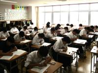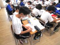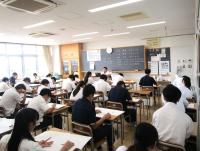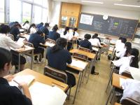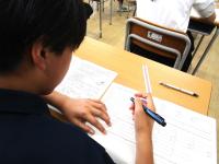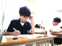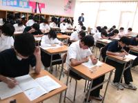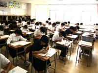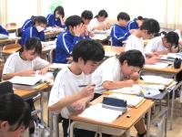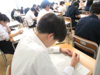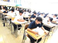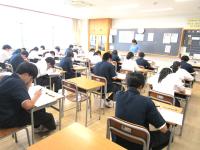 中間テスト2日目の様子です。生徒たちは皆、真剣な表情で問題に取り組んでいます。