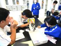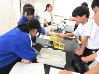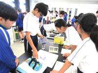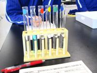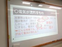 水単体は電流が流れない。食塩も電流が流れない。しかし、食塩を水に溶かした水溶液は電流が流れる。では、どんな水溶液でも電流が流れるのだろうか・・・という問いを立て、実験に取り組んでいます。様々な水溶液について、電流が流れるかどうか、予想を立て、実験し、その結果を自分たちの目で確かめています。この後、身近な飲み物(お茶やジュース類)が電流を通すのか調べるようです。結果が気になります・・・。