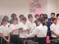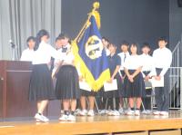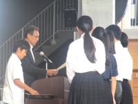 新生徒会長および新生徒会役員の任命式が行われました。校長から任命証を受け取り、旧生徒会役員からは校旗が引き渡され、新生徒会役員11名は気持ちを新たにしていました。