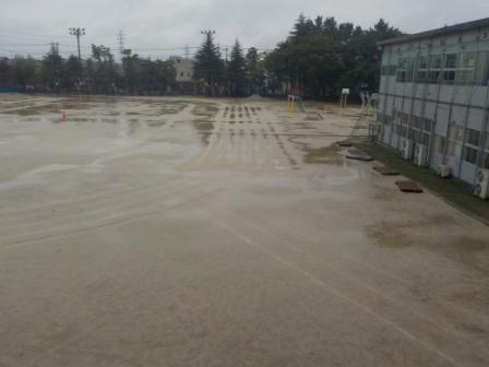 先週末から降り続いている雨が、とどまるところなく校庭を濡らしています。