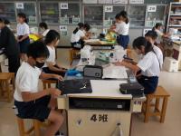 6年生がナップサック作りに頑張って取り組んでいました。昨年学習したミシンの使い方を生かして、縫い目に沿って丁寧に作っていました。子供たちの布地を見てみると、チョコパイやMONO、じゃがりこなど大人でも作成したくなるようなものが多かったです。完成を目指して上手に作ることができるとよいですね。