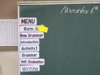 1時間目の1年3組の授業では、動詞の複数形について学習をしていました。大型TVを活用したアクティビティの他、「複数形になるのはどのような場合か」を学習課題にした学習でした。中央中の英語の授業は1時間座って終わることはありません。「話す」「聞く」「書く」が一時間に集約されており、生徒が集中力を切らさず学習を深めています。今回はゲームも取り入れながら動詞の複数形の法則を生徒みんなで考え結論を出していました。