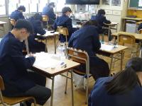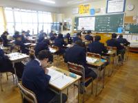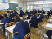 今日の帰りの会後、3年生はこれから実施される私立高校入試に向けての最終確認が行われました。進路担当の先生から具体的な動きについて説明がありました。