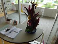 職員玄関にお花が生けてあるのを知っていますか?これは東中の先生が定期的に生けてくれているものです。季節を感じることができて、素敵ですよね。来校する外部のお客様も、皆さん「きれいですね」とおっしゃってくれます。まだ見たことがない生徒の皆さんは、ぜひ鑑賞してください。
