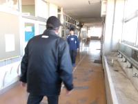 1月16日(金)、不審者対応避難訓練を実施しました。今年度は、吉川警察署生活安全課の方に不審者役を担当していただき、実際に起こりえる場面を想定して、実施しました。児童は緊急放送を受けて、教室を施錠し安全を確保。職員がさすまたを持って複数で不審者対応にあたりました。警察が来るまでの時間は5~7分との想定でしたが、とても長く感じました。最後に体育館で全体会を行い、皆で安全の意識を高めることができました。