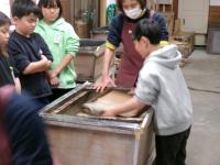 午前中は、東秩父村和紙の里に行き、紙すき体験を行いました。授業で習ったことを実際に体験し、みんなとても楽しそう!