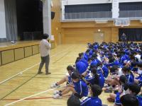 吉川中の生徒は皆、「スコラ手帳」を持っています。日ごろからこの手帳を活用し、スケジュール管理のみならず、自分の目標を立てたり、課題に気づいてメモしたり、一日を振り返って考えを深めたり・・・と、社会人になったときに役立つ習慣を身につけています。「手帳甲子園」では、手帳を上手に、効果的に使用できている生徒を互いに選び、代表者が発表をします。本日は、体育館を使用して、1年生の各学級の代表者が発表していました。