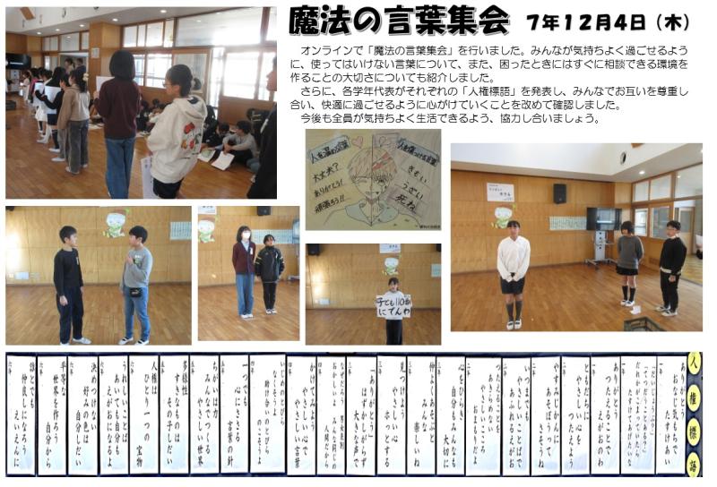 令和7年4月に「いじめの防止等のための基本的な方針」の見直しを行い、いじめの防止等に職員一同全力で取り組んでまいります。資料を掲載しましたので、ご一読ください。
